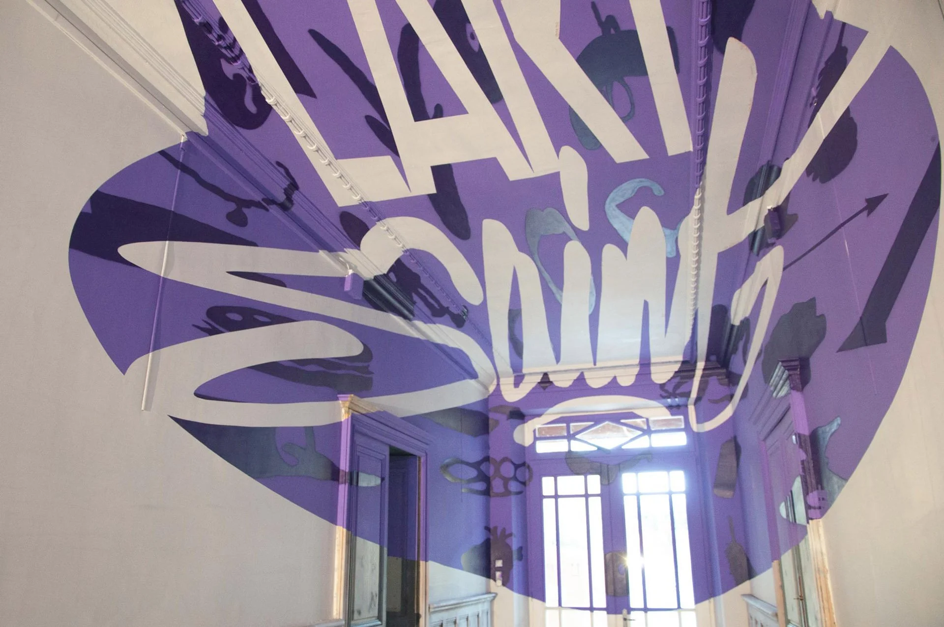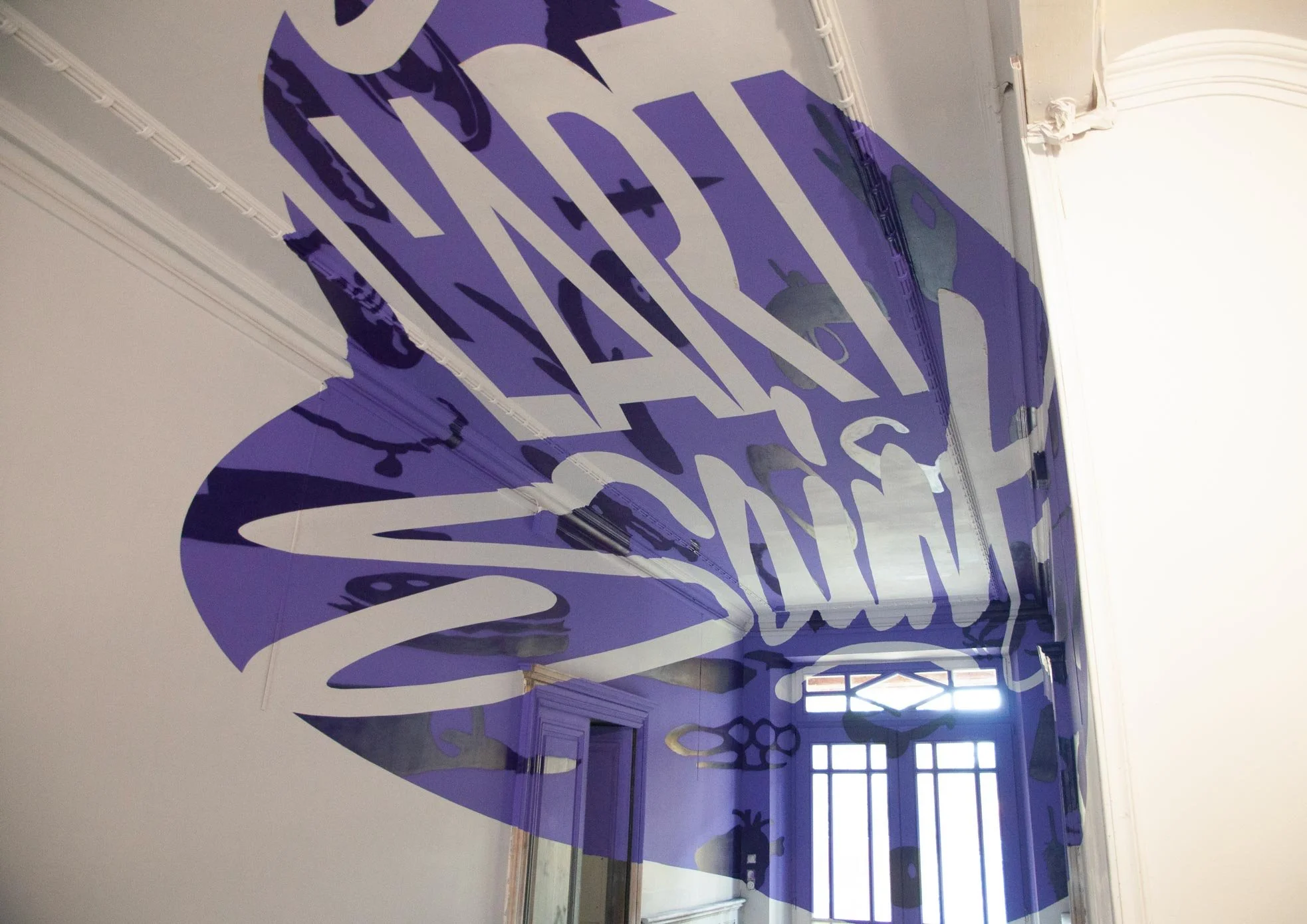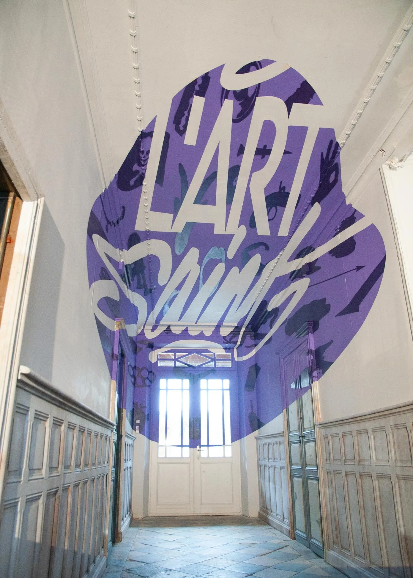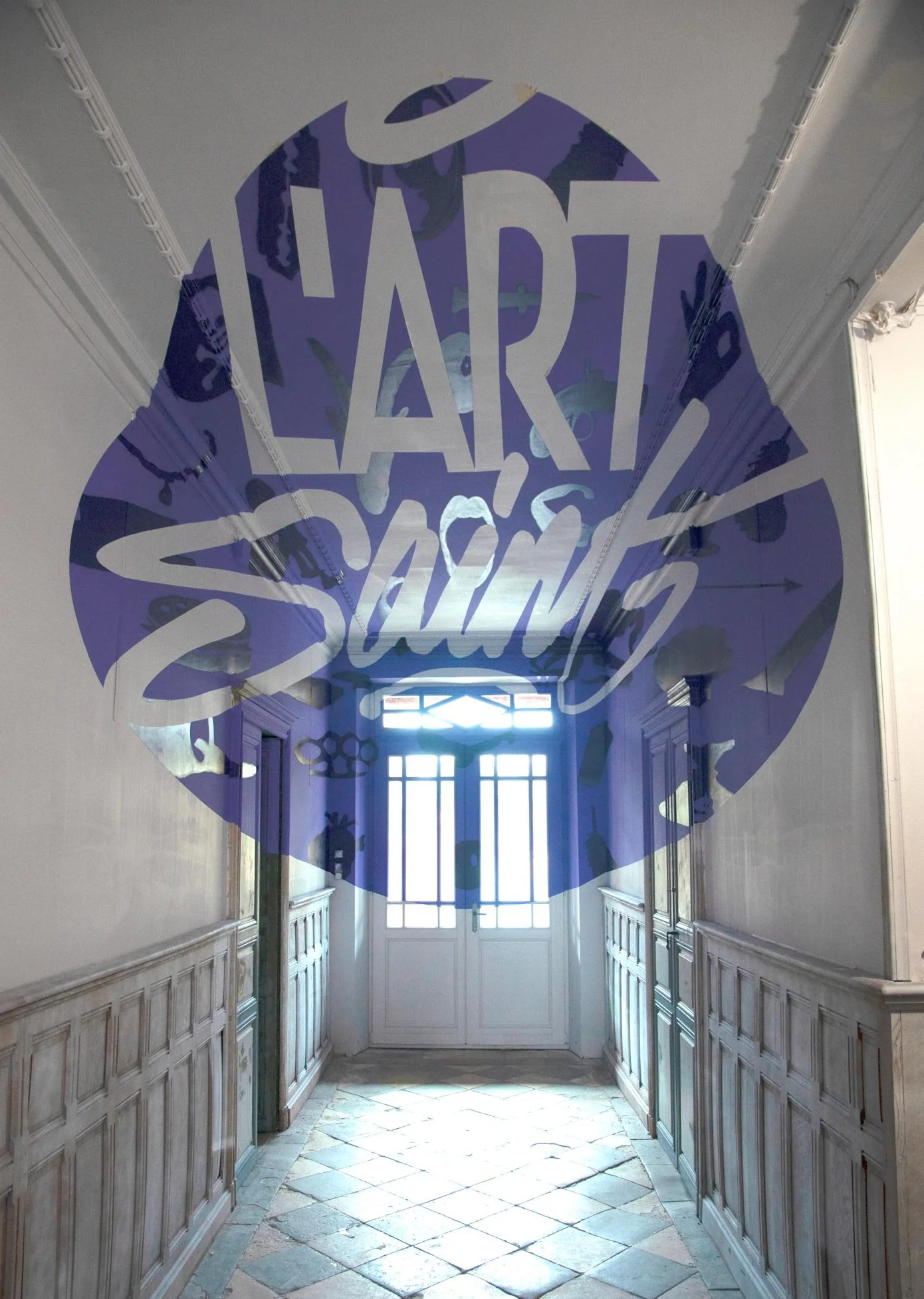 Carte blanche pour cette réalisation, nous avons prit le parti de l’illustration graphique mélangée à de la typographie. Le jeu de mot reprend l’expression « le Saint art » en inversant les mots, ce qui lui donne un tout autre sens dans sa consonance ! Larcin, petit délit de rue, que l’on retrouve dans les pictogrammes du fond. un concept original qui a beaucoup plu au commanditaire !