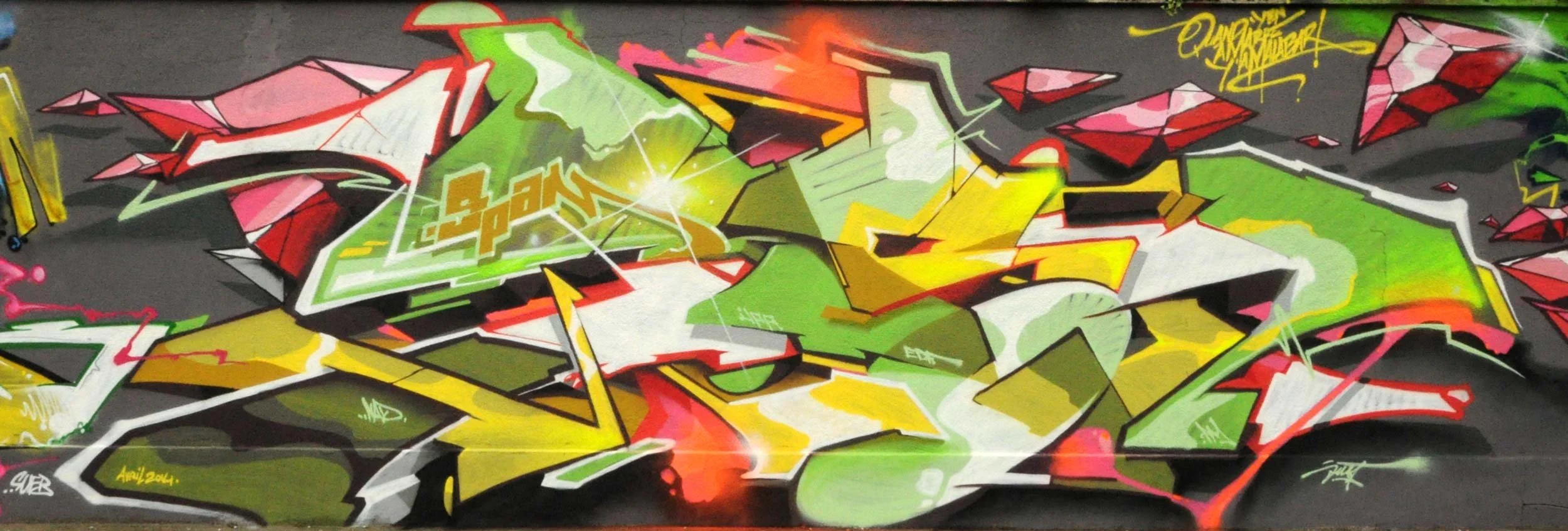 C’est avec la bande des JPP et des 3HC que nous avons réalisé cette fresque sur un mur privé donnant sur la rue à Bagnolet ! Une belle bande de couleurs et de styles avec entre autres les artistes Retro, Brok, Alex, Jupe, Takt, Obao, Wise, Cuba. Très bon souvenirs sur deux jours sous les regards étonnés des passants ;).